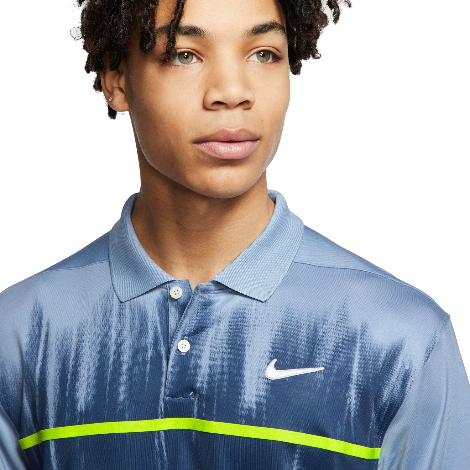 Get performance first for the golf course in the Nike Dri-FIT Vapor Printed Polo. This polo provides golfers with breathability and stretch that allows you to play your best and features Dri-FIT technology that wicks sweat from the body to keep you dry and comfortable and the back of the collar is perforated for breathability for added comfort. The jersey fabric is lightweight and stretchy and has shoulder seams that are rolled forward that provides mobility through your swing. The Vapor polo has hem vents that drape nicely when worn untucked and will stay tucked in when needed and the abstract print resembles the ever-present fog of San Francisco.